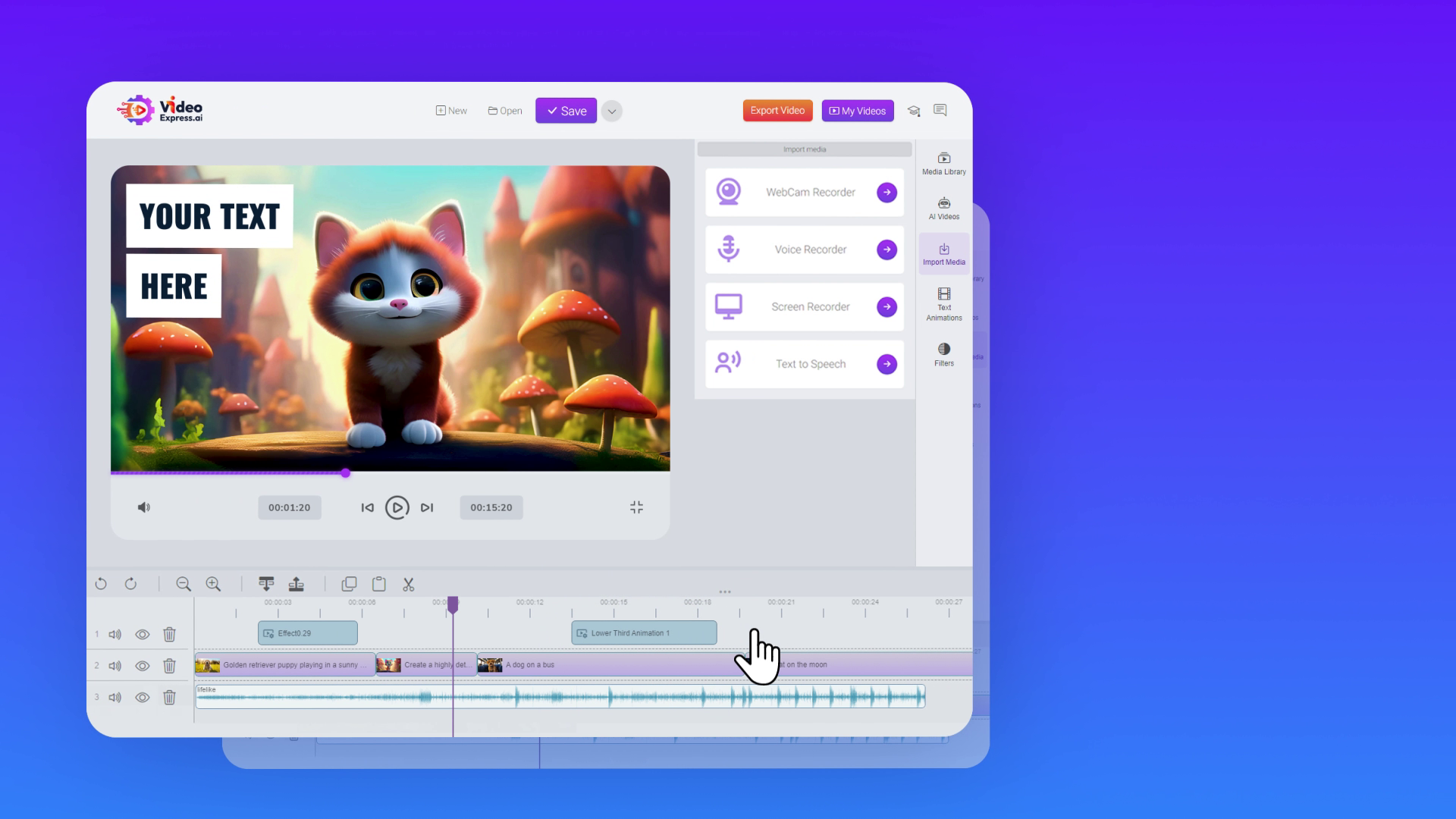 Save time on editing by creating videos with AI. Upload your photos and videos, pick a video style and watch as a your mediais transformed into a share-worthy video for any platform.